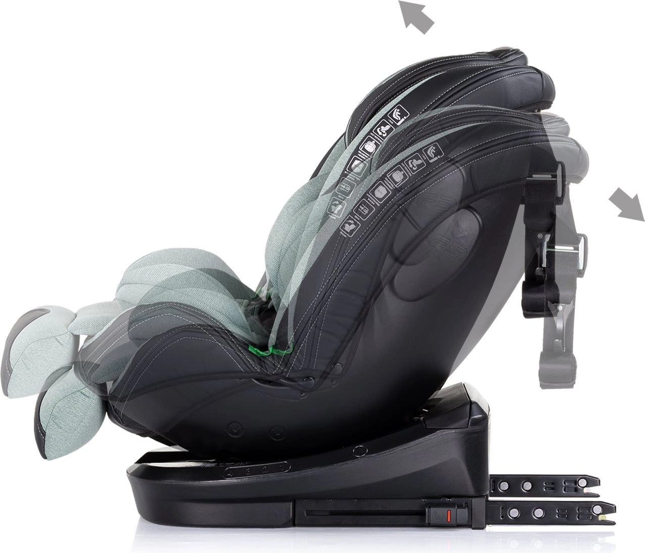 - ISOFIX-connectoren + Top Tether / autogordel (afhankelijk van modus)
