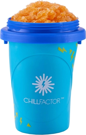 De CHILLFACTOR Slushy Maker in het blauw verandert je favoriete gekoelde drankje binnen enkele minuten in een fijne slushy. Eenvoudig in gebruik – vries de beker eerst in, schenk je drankje erin, plaats de deksel en knijp. Het resultaat? de perfecte zelfgemaakte slushy wanneer je er maar zin in hebt.