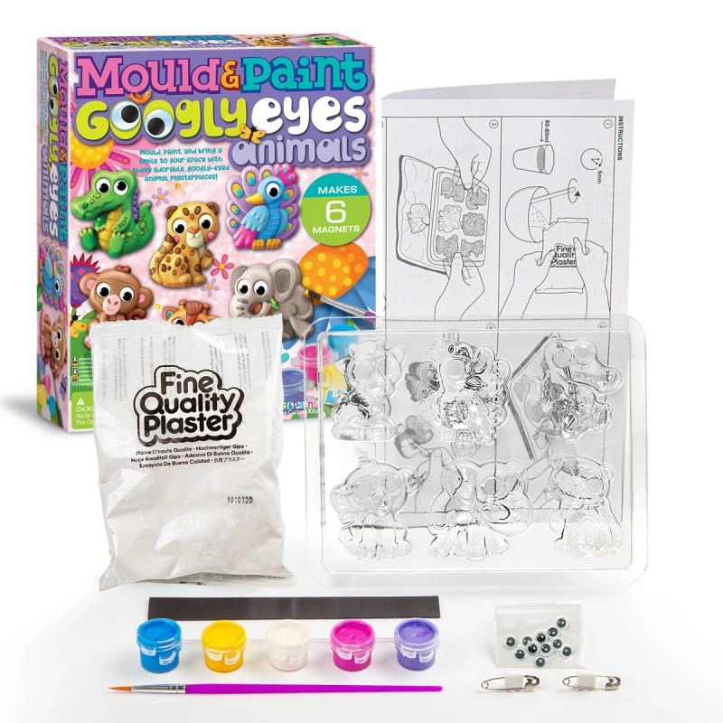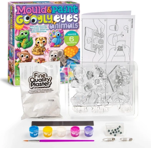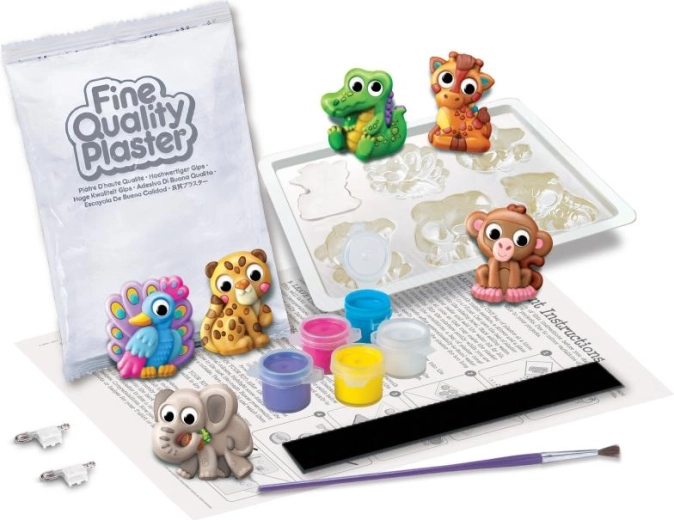 Deze creatieve set combineert gieten met gips en schilderen tot één speels project dat de fijne motoriek, het geduld en de fantasie ontwikkelt. In de doos vind je diervormpjes, gips, een penseel, verf en magneten voor het eenvoudig afwerken van de decoraties.