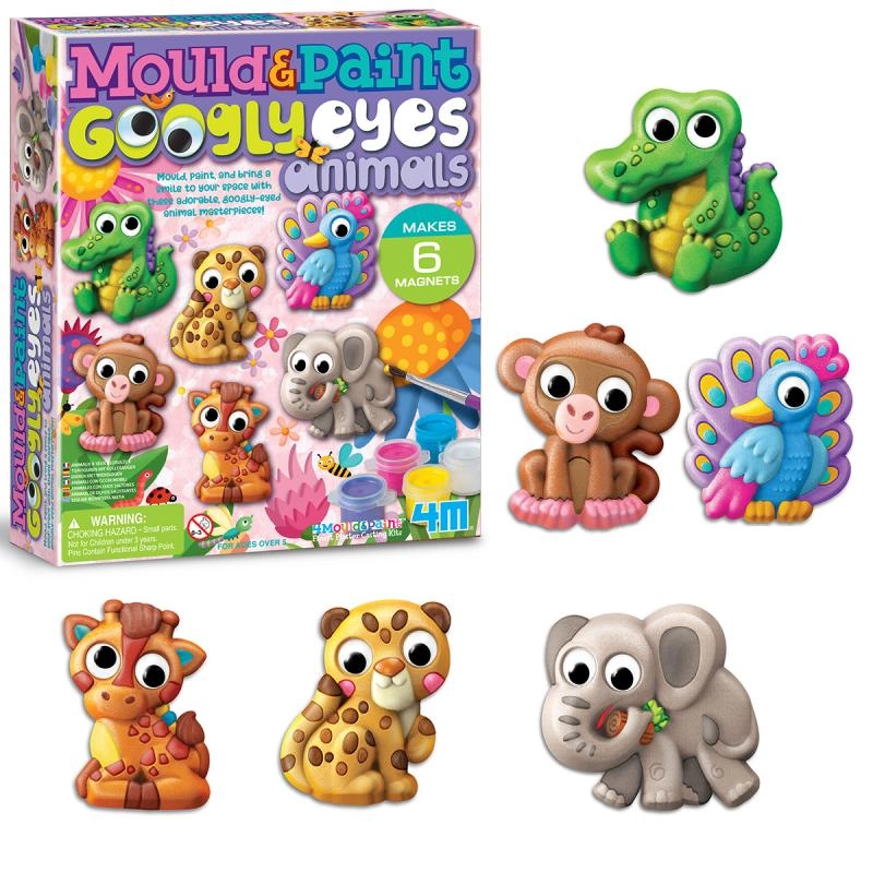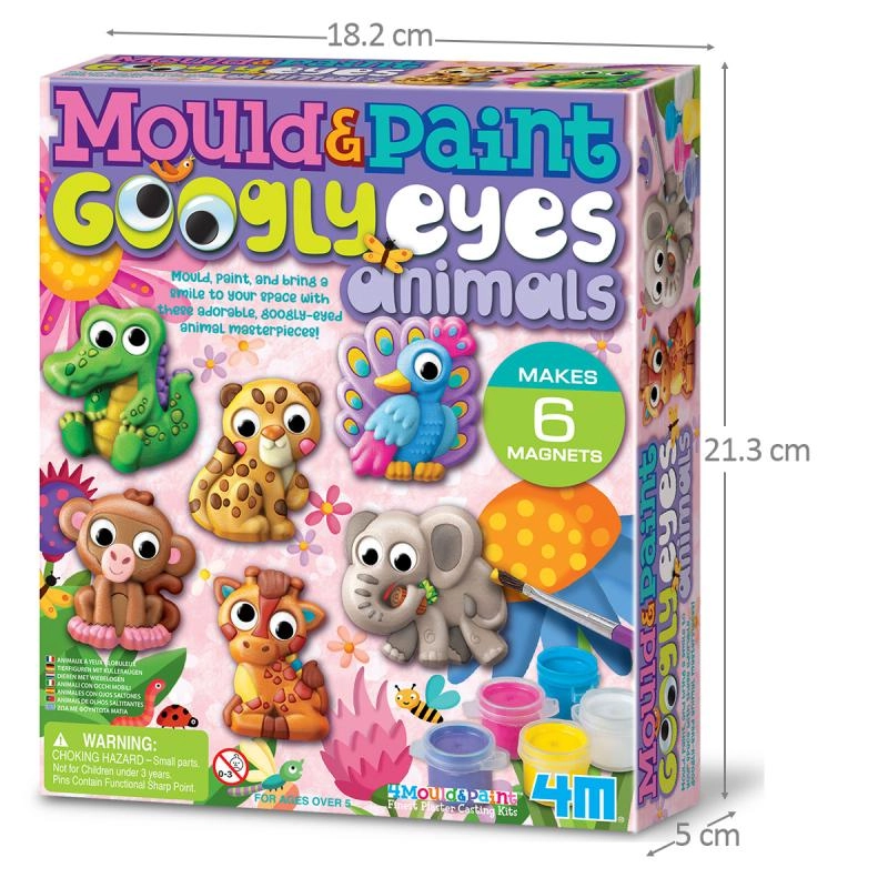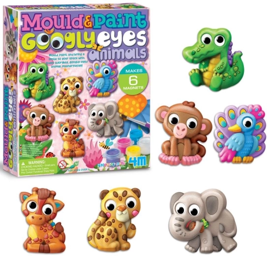 Kinderen maken tot 6 originele magneten – bijvoorbeeld een olifant, aapje, pauw, giraffe, luipaard of krokodil. De beweeglijke ogen geven elke creatie een speelse uitdrukking en de eindresultaten worden een favoriete toevoeging aan de kinderkamer.