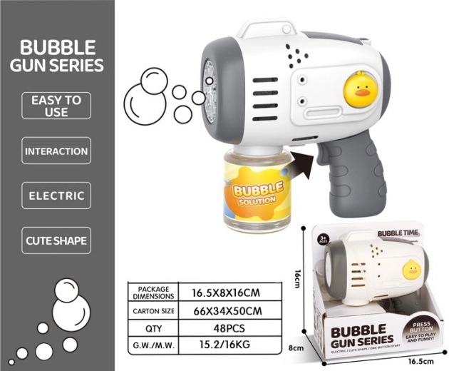 Leuk bellenblaaspistool met een reservoir van 90 ml dat in een oogwenk veel kleurrijke bellen tovert. Eenvoudige bediening en snelle belvorming zorgen voor plezier voor kinderen en volwassenen in de tuin, op feestjes en bij buitenspelen. Werkt op 4× AA-batterijen (niet inbegrepen).