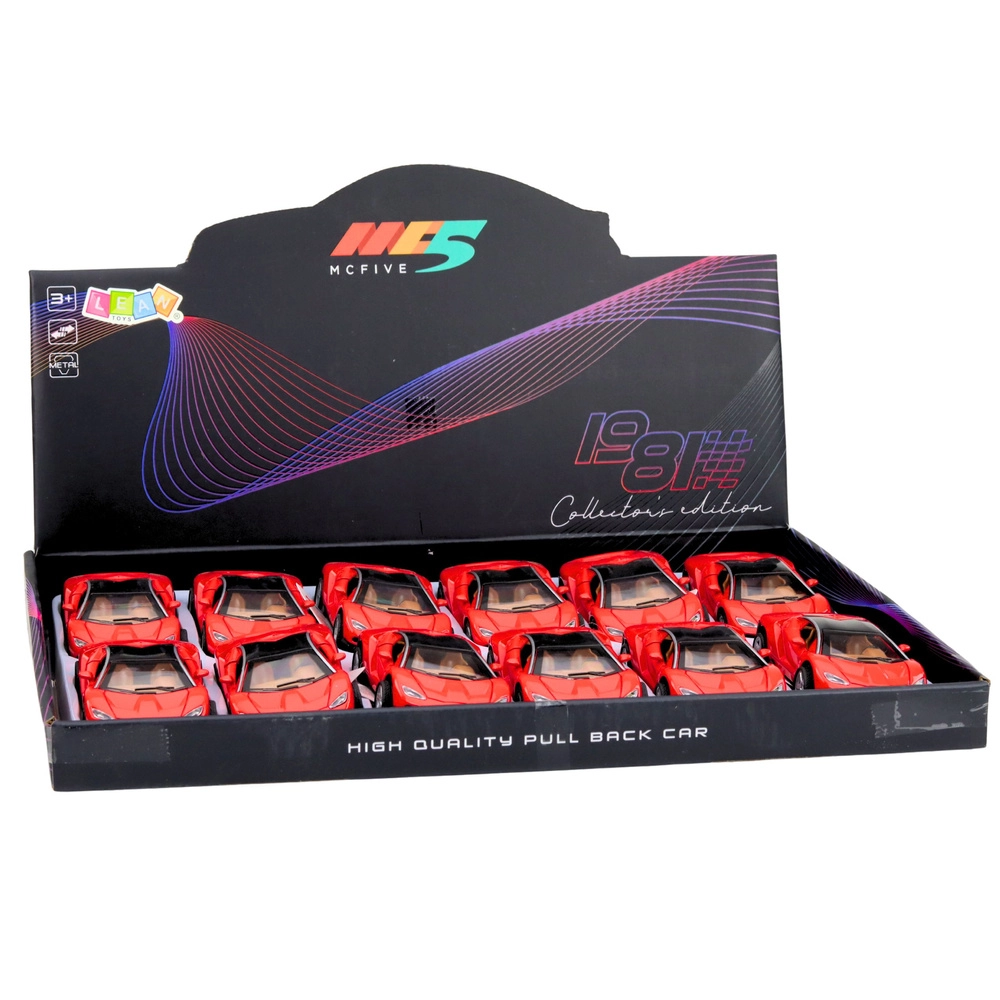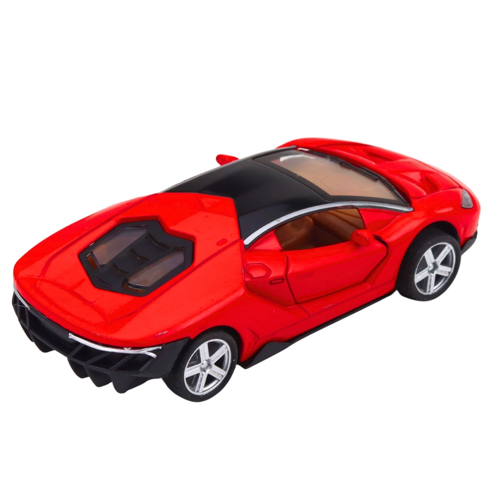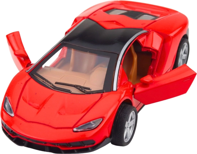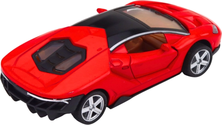 Dit rode model van een sportauto combineert een metalen carrosserie met een gedetailleerde afwerking van interieur en exterieur. Dankzij de compacte afmetingen ligt hij prettig in de hand en is hij ideaal om mee te spelen of tentoon te stellen in een collectie. De openende deuren geven zicht op het interieur en versterken de realistische indruk.