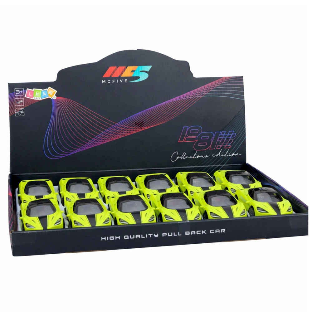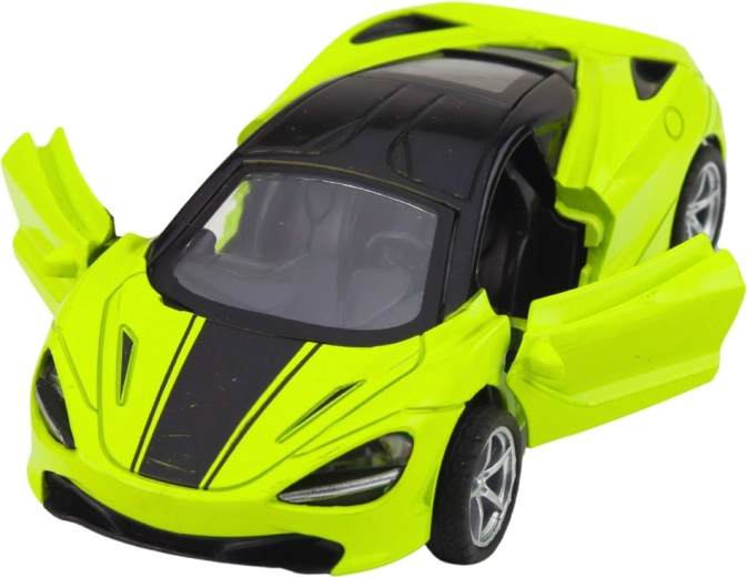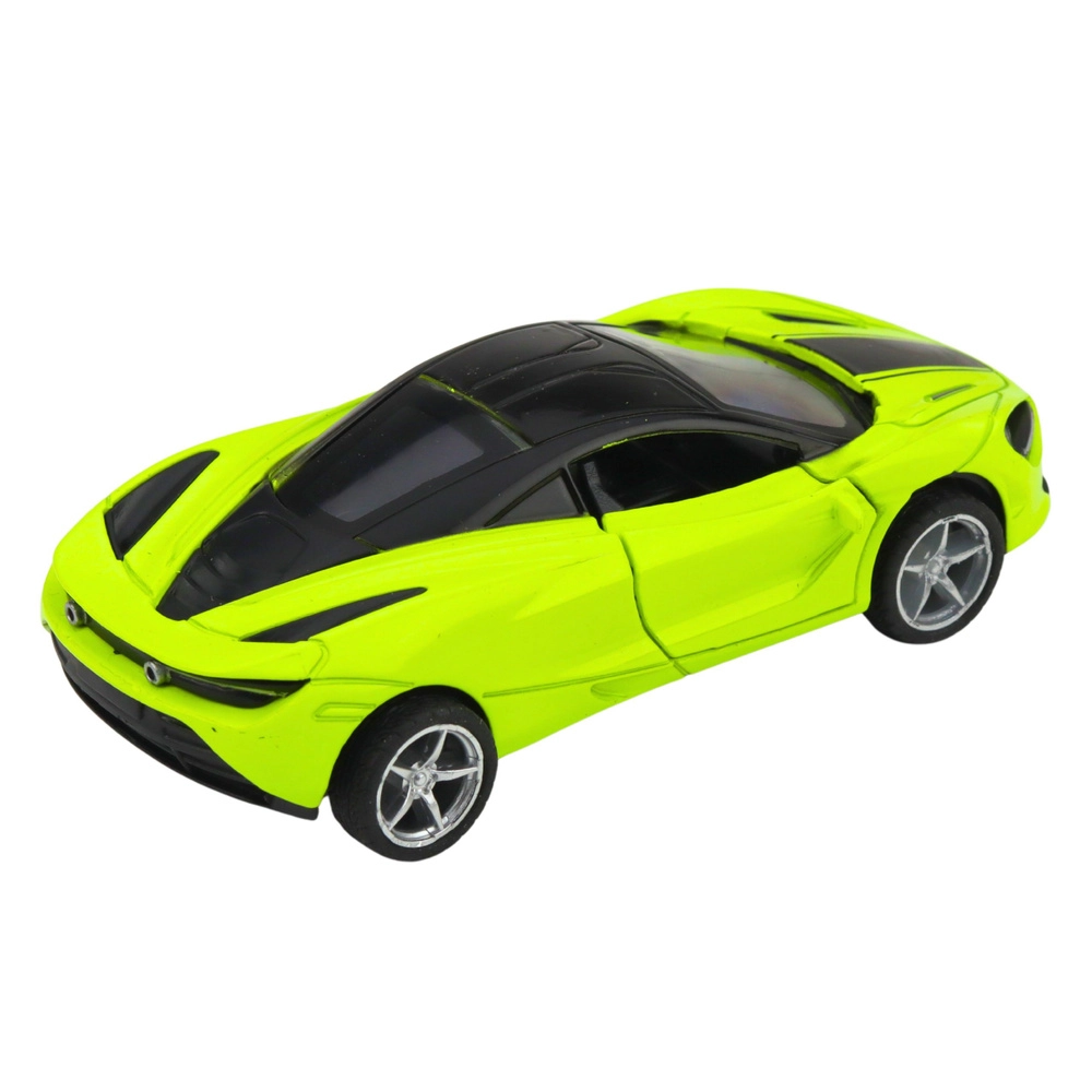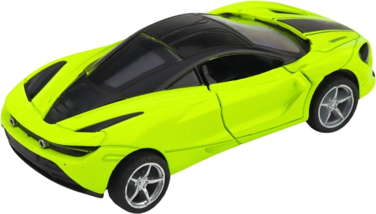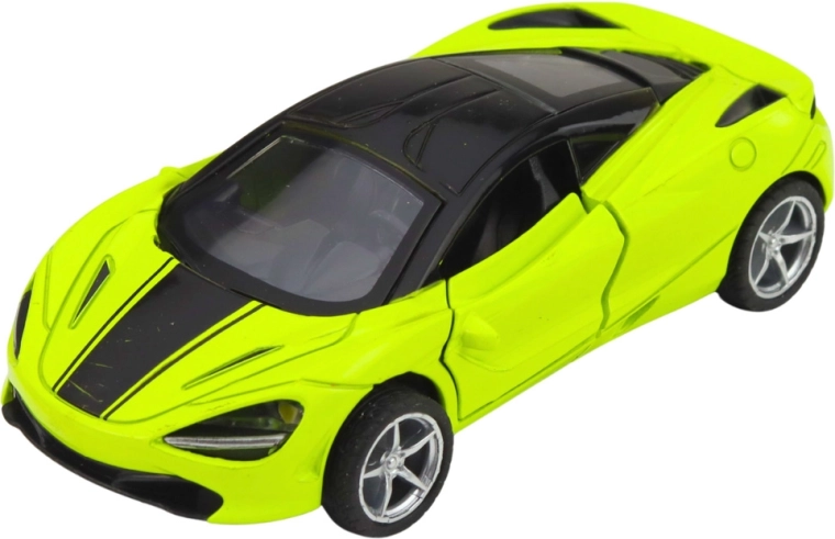 Stijlvolle metalen sportwagen in schaal 1:32 die zowel kleine als grote autofans zal verrassen. Hij heeft een metalen carrosserie, een pull-back terugtrekmotor, openende deuren en licht- en geluidseffecten. De compacte afmetingen en opvallende groene kleur zijn perfect voor dagelijks spelen en als verzamelmodel.