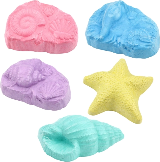 Binnenin zitten vormen geïnspireerd door de oceaan – schelpen of zeesterren. Elk blok biedt een andere verrassing.