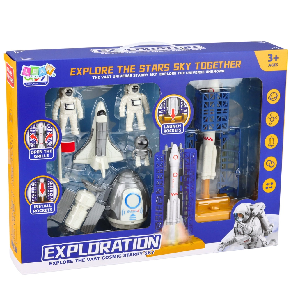 Ontdek de leuke kosmische set voor jonge ontdekkers – een grote raket op een lanceertoren, een realistische shuttle (ruimtevliegtuig), 2 astronautenfiguren, een satelliet en een ruimtemodule. Van voorbereidingen tot lancering en werk in een baan om de aarde – deze duurzame kunststof set stimuleert creativiteit, fijne motoriek en interesse in wetenschap en technologie. Voldoet aan de Europese veiligheidsnormen (CE).