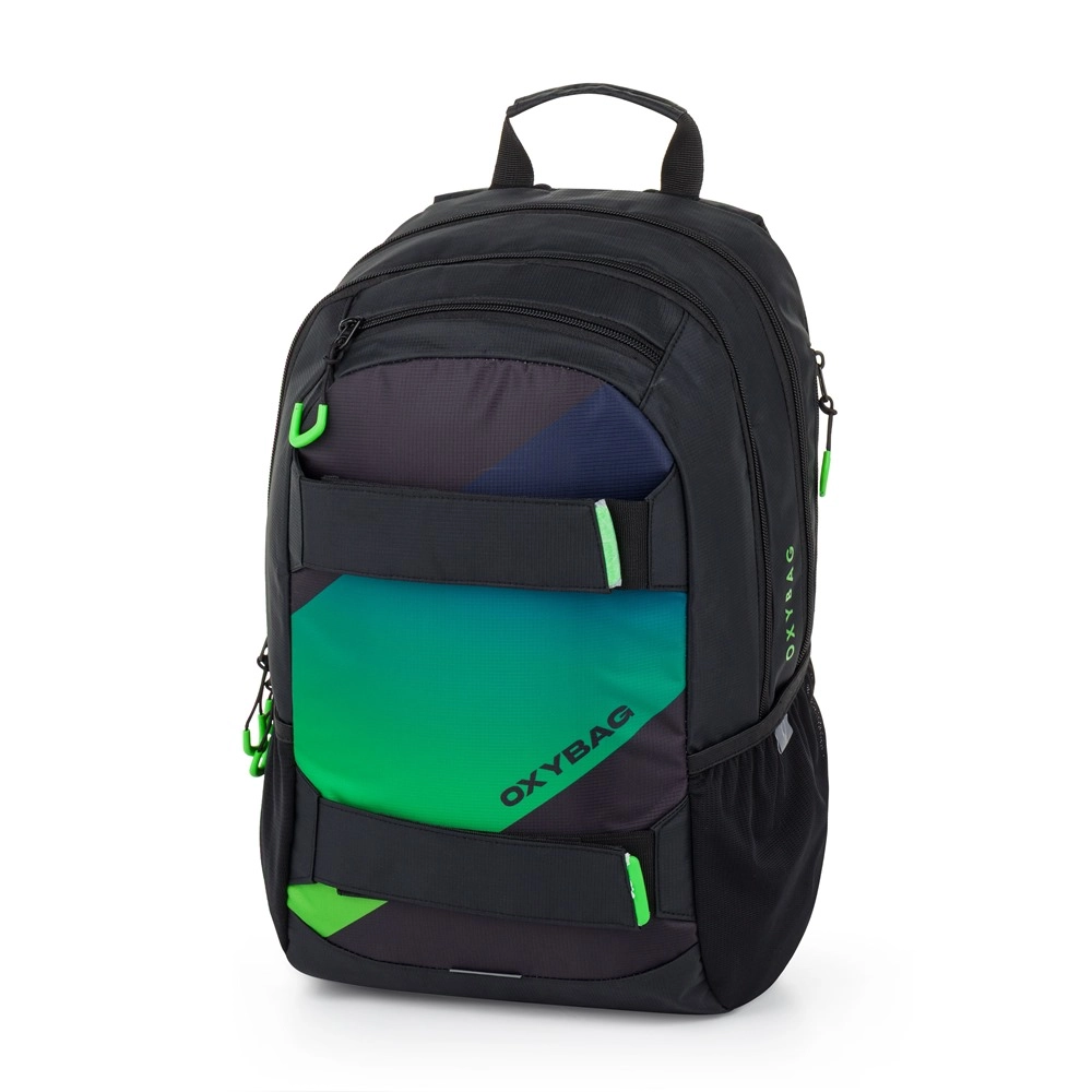 Praktische set voor school en vrije tijd: studentenrugzak OXYBAG Sport Ombre met een ruime etui. Biedt ergonomisch gevormde rug, gepolsterde en verstelbare schouderbanden met borstriem, twee hoofdvakken, een verstevigd laptopvak, zijvak voor een fles en reflecterende elementen voor betere zichtbaarheid. Licht en duurzaam ontwerp voor comfortabel dagelijks gebruik.