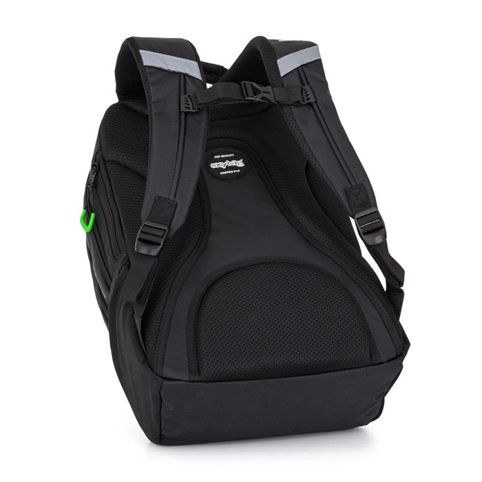 De binnenkant wordt aangevuld met een verstevigd laptopvak, een karabijnhaak voor sleutels, een vak voor kleine spullen en een verborgen achtervak voor waardevolle items. Er is een zijvak voor een fles en reflecterende elementen voor veiliger bewegen in het schemer. De set bevat ook een studentenetui voor schrijfbenodigdheden met een praktische elastische band en rits.