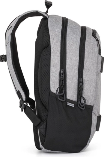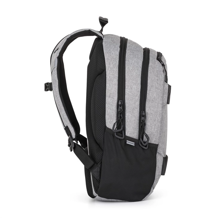 Gevoerde, verstelbare schouderbanden, een ergonomisch gevormd rugpand en een borstriem verdelen de belasting en houden de rugzak stabiel op de rug, ook bij de hele dag dragen.