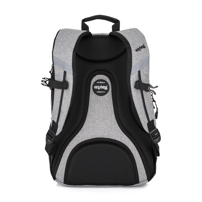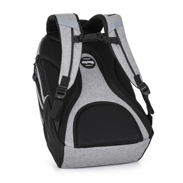 De OXYBAG Sport Grey Melange studentenrugzak is ontworpen voor comfortabel en veilig dragen van school- en vrijetijdsspullen. Ergonomisch gevormd rugpand, gevoerde, verstelbare banden en een borstriem zorgen voor stabiliteit op de rug en comfort gedurende de hele dag. Twee hoofdvakken met stevige ritsen bieden voldoende ruimte voor boeken, schriften en kleding, terwijl het kleinere voorvak snelle toegang tot kleine items vergemakkelijkt.