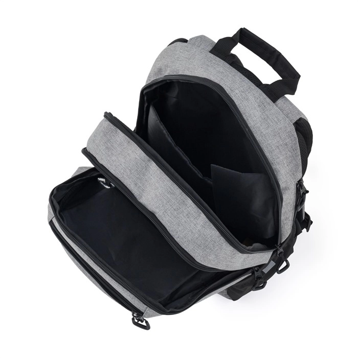 Twee hoofdvakken, een voorvak met organizer, een karabijnhaak voor sleutels en een verstevigd laptopvak houden alles overzichtelijk en veilig.