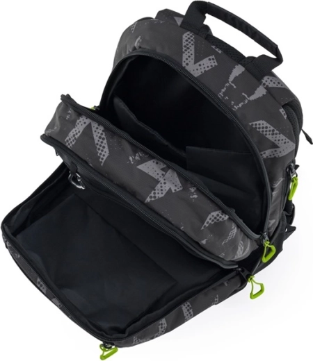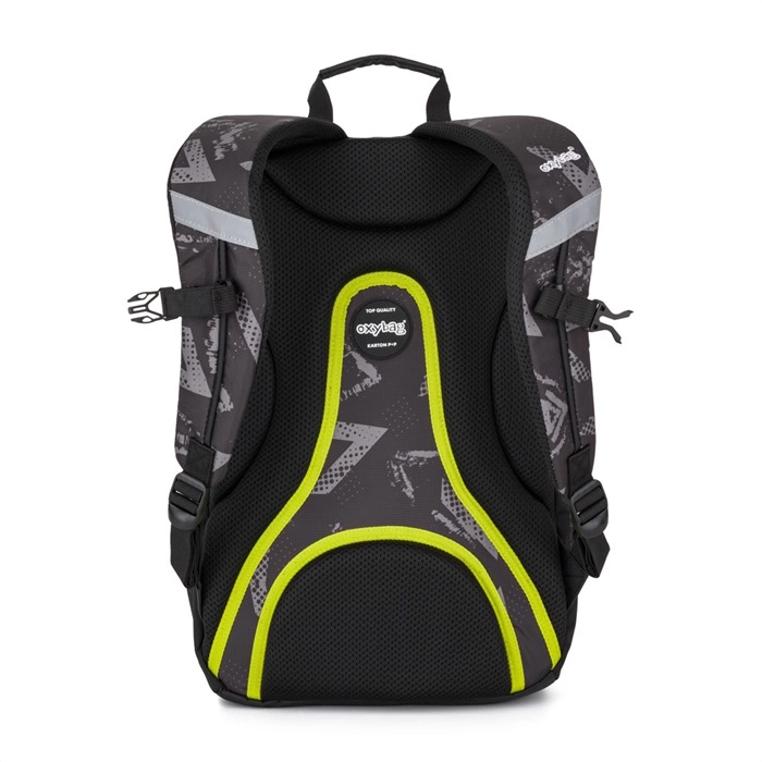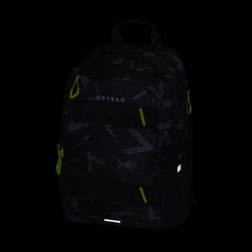 De OXYBAG Oxy Sport Abstract studentenrugzak is ontworpen voor comfortabel dagelijks gebruik. Dankzij de anatomisch gevormde rug, ademende voering en gevoerde schouderbanden met borstriem past de rugzak zich uitstekend aan het lichaam aan en zit hij stabiel, zelfs bij volledige belading. Kwalitatieve ritsen met treklipjes, duurzaam materiaal en reflecterende details voor betere zichtbaarheid ontbreken niet.