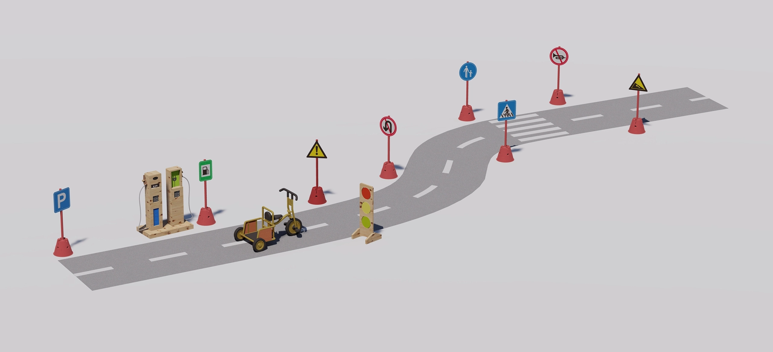De robuuste houten constructie is ook geschikt voor buiten, terwijl de gladde oppervlakken en stabiele basis zorgen voor veilig gebruik. Spel bevordert op natuurlijke wijze creativiteit, coördinatie, manuele vaardigheden en ecologisch bewustzijn rond moderne mobiliteit.