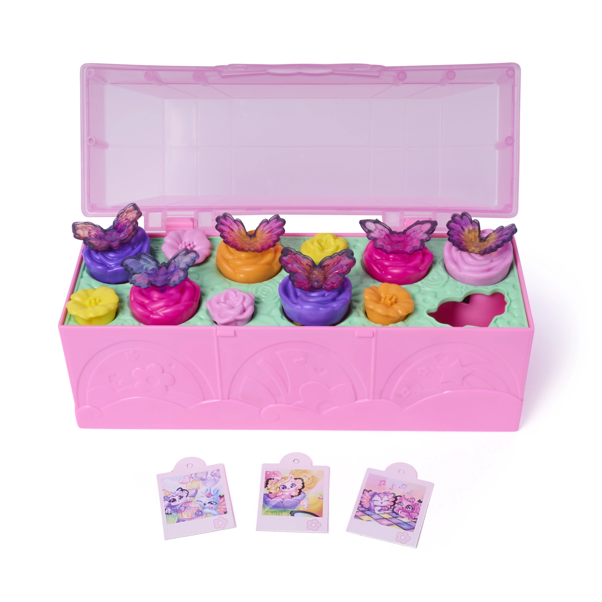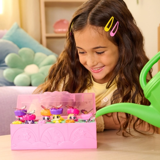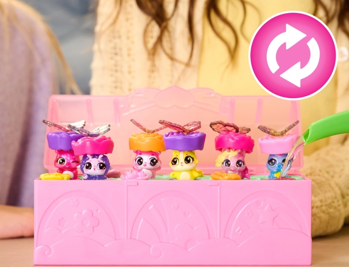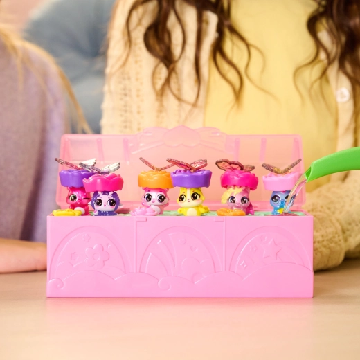 Giet water in het hart van de koffer en kijk hoe de bloemen opkomen en de schattige Bloomables onthullen. Het betoverende verrassingsmoment verrukt bij elk spel.