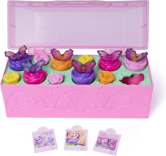 Dankzij de slimme koffer is spelen en presenteren overzichtelijk en stijlvol. De set is eenvoudig te resetten – haal de vleugeltjes eraf, plaats de bloemen en accessoires terug en het watermagie‑effect bloeit opnieuw op. Een ideaal cadeau voor kinderen die dol zijn op verrassingen, verzamelbare figuren en creatief spel.