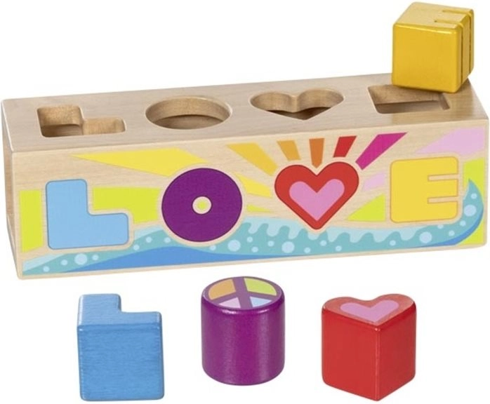 Kinderen plaatsen de stukjes eenvoudig in de juiste openingen, trainen fijne motoriek en logica en maken kennis met de letters L, O, V, E.