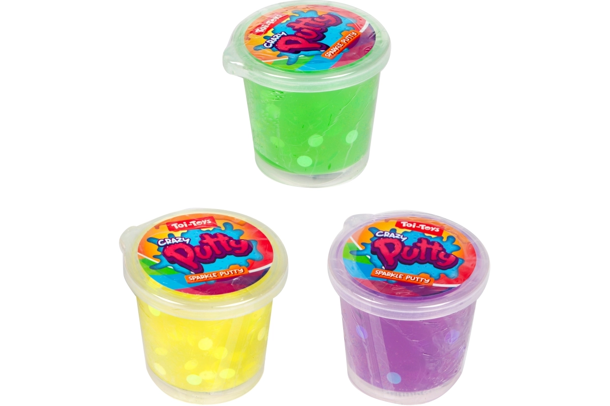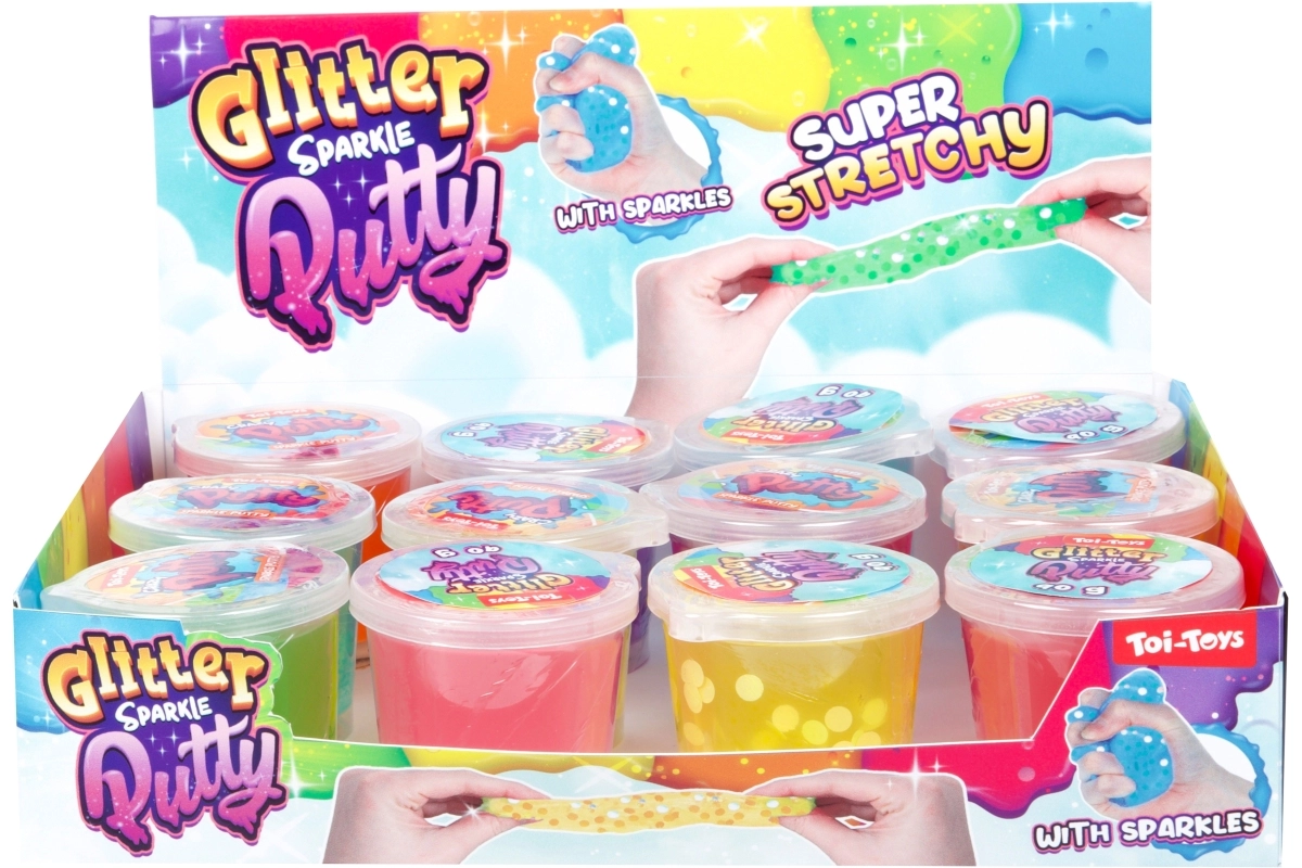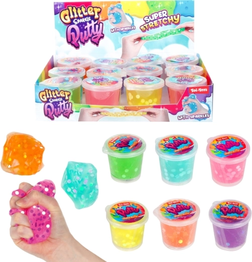 Elke stuk wordt geleverd in een transparant plastic potje met compacte afmetingen van 6 × 6 cm, dat de slijm vers en schoon houdt. Dankzij het glitter- en confettieffect ziet het er zeer aantrekkelijk uit en nodigt het uit tot verder spelen. Kleuren worden geleverd in verschillende tinten afhankelijk van de actuele beschikbaarheid.