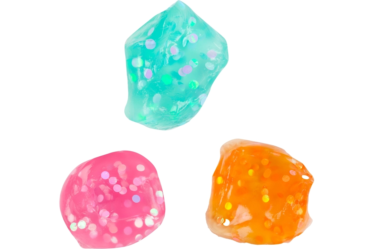 Deze kleurrijke slijm met grote glitters biedt een uitstekende zintuiglijke ervaring – hij is aangenaam soepel, uitrekbaar, kneedbaar en vormbaar en schittert prachtig in het licht. Ideaal als antistresshulpmiddel en als leuke speelgoedslijm voor kinderen vanaf 3 jaar.