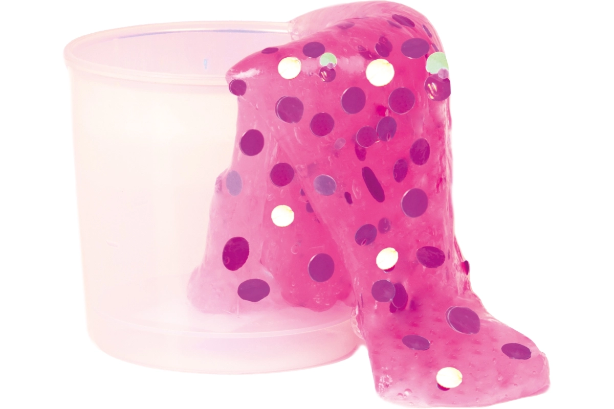 Het transparante plastic potje met klikdeksel houdt de slijm vers en klaar voor nog meer plezier.