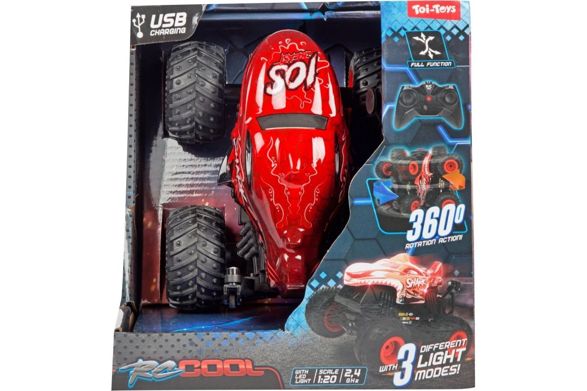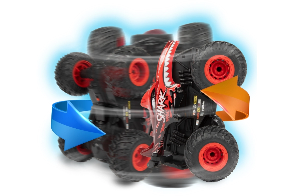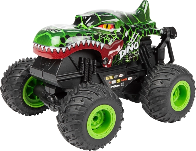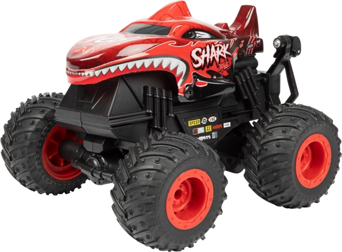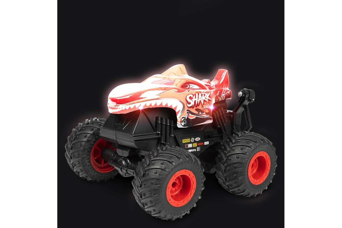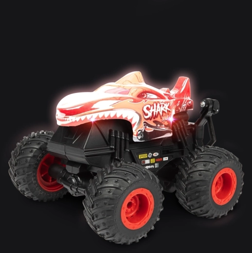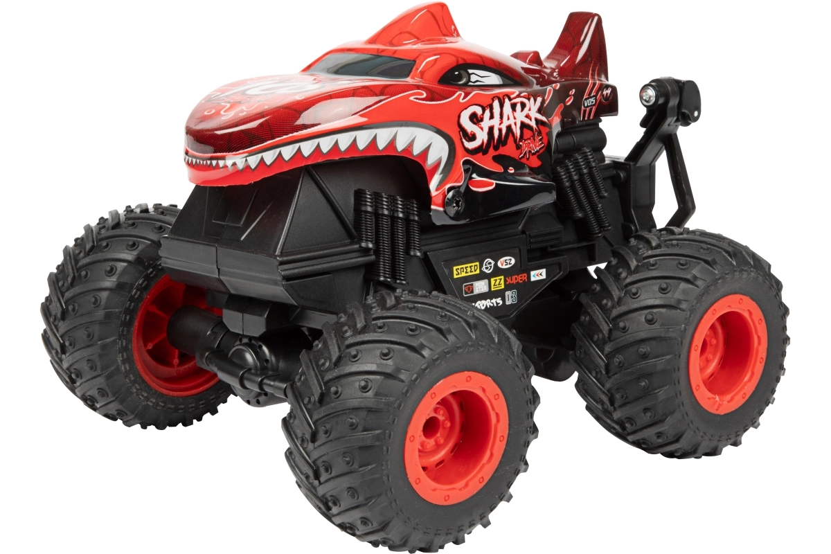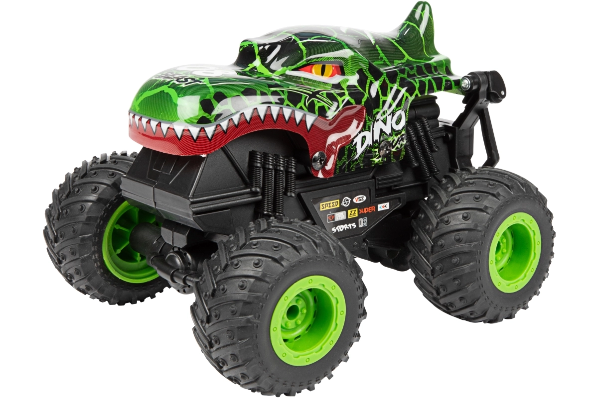 De monstertruck is gemaakt van duurzaam kunststof, heeft grote, geprofileerde wielen en zichtbare vering voor betere stabiliteit op oneffen terrein. Twee aantrekkelijke looks (dinosaurus of haai) worden geleverd op basis van voorraadbeschikbaarheid – beide vallen op door hun opvallende design en robuuste uitvoering.