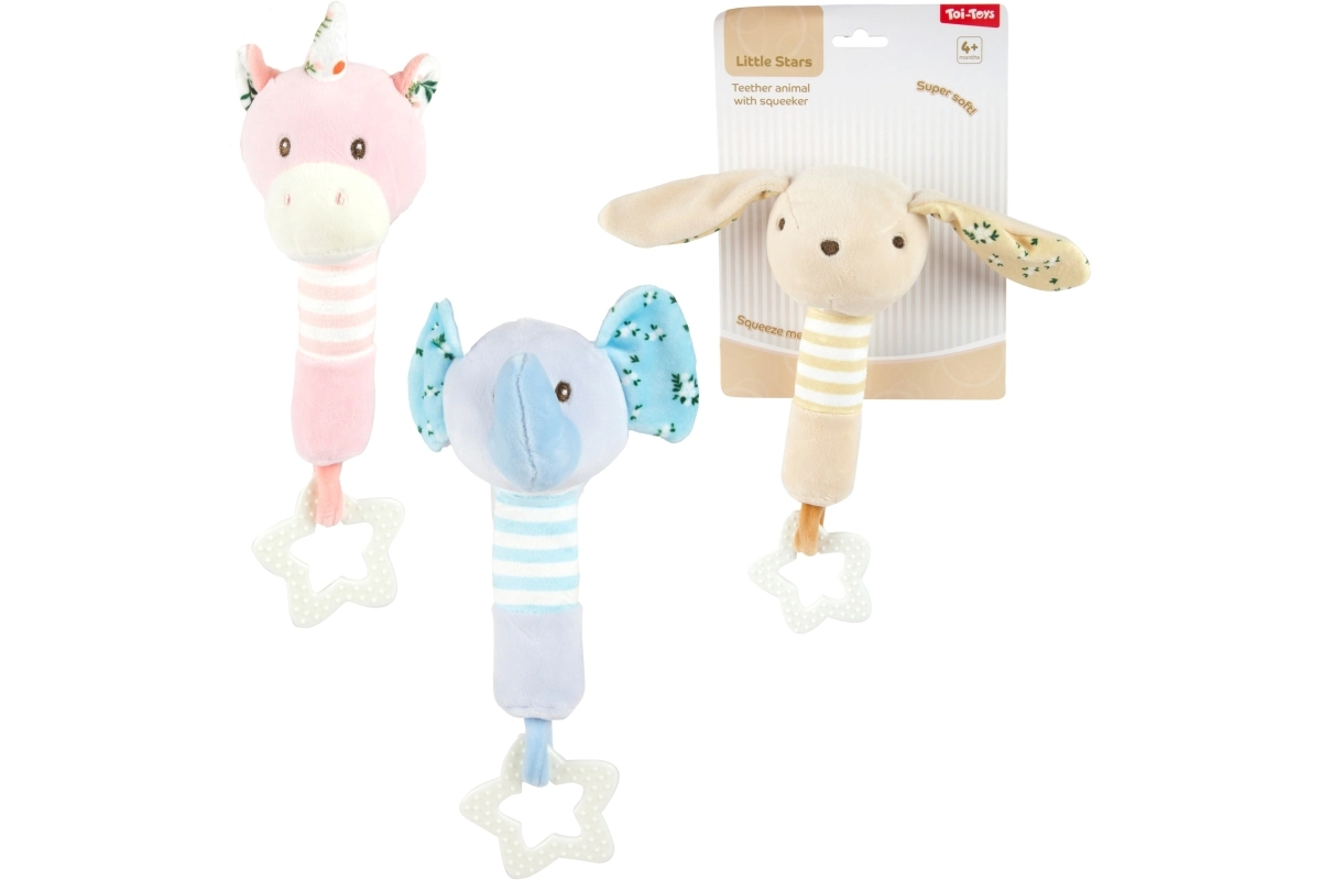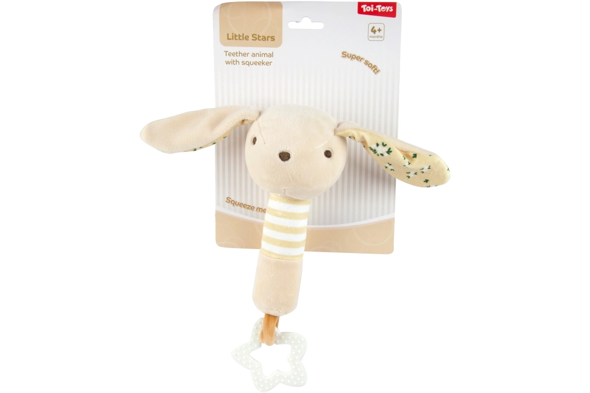 Deze pluchen knuffel uit de Little Stars-collectie is ontworpen voor de allerkleinste handjes. Zachte materialen, gedempte pasteltinten en vriendelijke dierenmotieven vallen meteen op, terwijl de geïntegreerde bijtring in stervorm helpt geïrriteerd tandvlees te kalmeren. Ook inbegrepen zijn een rammelaar en knisperende elementen die het gehoor en nieuwsgierig spel stimuleren.