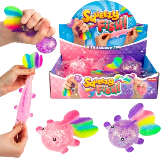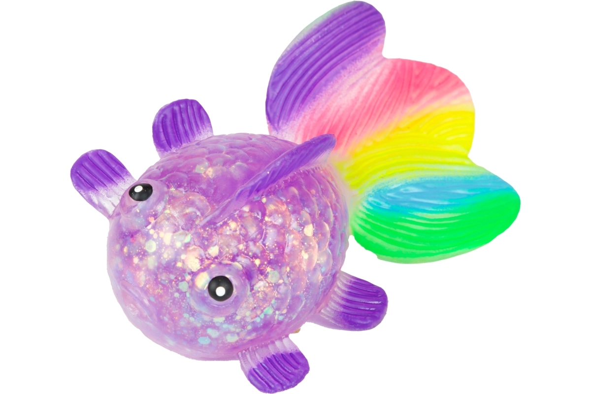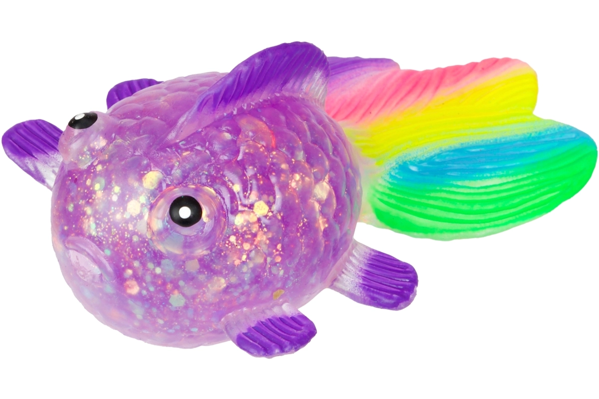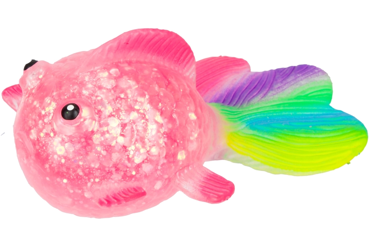 Ontdek het rustgevende gevoel van knijpen met dit schattige glinsterende visje met een zacht gellichaam, transparant glittereffect en een kleurrijke staartvin. Dankzij het compacte formaat van 12×7×4,5 cm ligt het comfortabel in de hand en is het ideaal voor ontspanningsmomenten thuis, op school en op kantoor.
