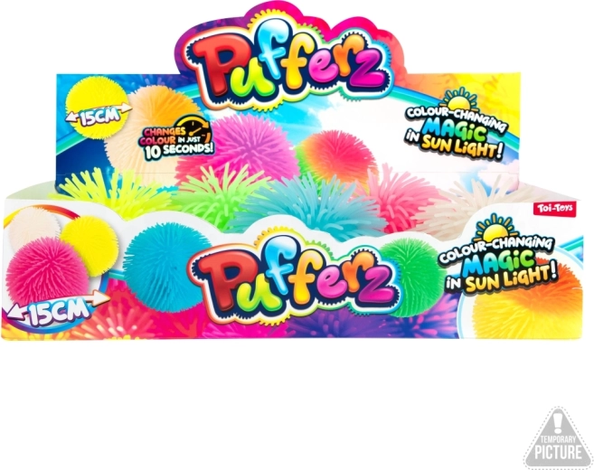 Leuke pluizige rubberen bal met een diameter van 12 cm die in het zonlicht van kleur verandert. Een geweldige keuze voor actief spel, motoriekontwikkeling en vrolijk plezier buiten en binnen. Geleverd in verschillende kleuren afhankelijk van de voorraad. Geschikt voor kinderen vanaf 3 jaar.