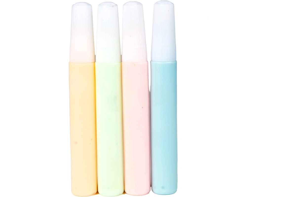 De set bevat geel, lichtgroen, roze en lichtblauw voor kleurrijke en creatieve combinaties op textiel.