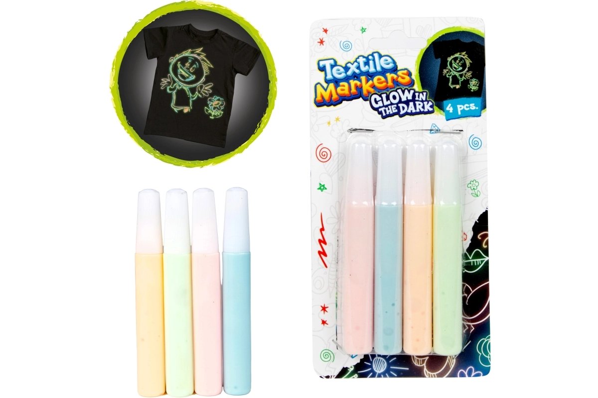 Ontdek hoe leuk het is om textiel te versieren met stiften met een gloei-effect in het donker. Eenvoudige applicatie, een comfortabel dopje en intense kleuren maken het mogelijk om zowel details als grotere vlakken te tekenen op T-shirts, hoodies, tassen of kussens.