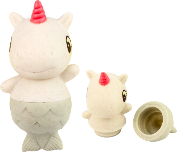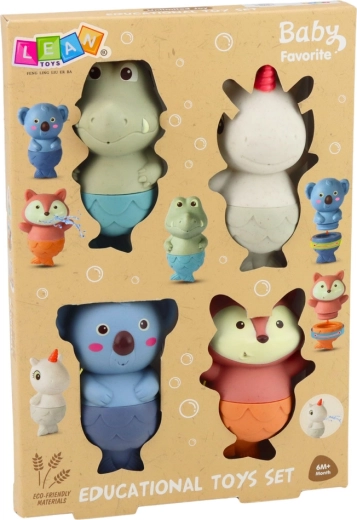 De set van vier kleurrijke diertjes – krokodil, koala, vos en eenhoorn – maakt van elk bad een vrolijk avontuur. Dankzij het zachte, soepele rubber liggen de speeltjes prettig in zelfs de kleinste handjes en zijn ze vriendelijk voor gevoelige huidjes. Pasteltinten en lieve gezichtsuitdrukkingen stimuleren de fantasie en zintuiglijke beleving.