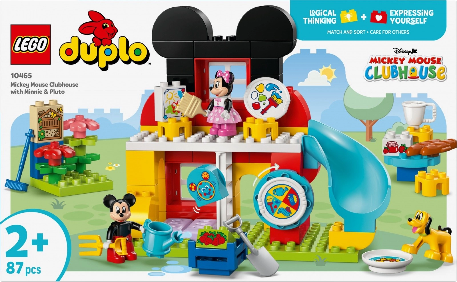 De set biedt alles voor rijk spel: een clubhuis met twee verdiepingen van grote, peutervriendelijke stenen, een glijbaan, een atelier, een tuintje met een insectenhuisje, tafeltjes en stoelen en speciale deurtjes voor Pluto. Inclusief de figuren MICKEY, MINNIE en PLUTO en een bedrukte steen met een computer, die verhalen vertellen en rollenspel stimuleert.