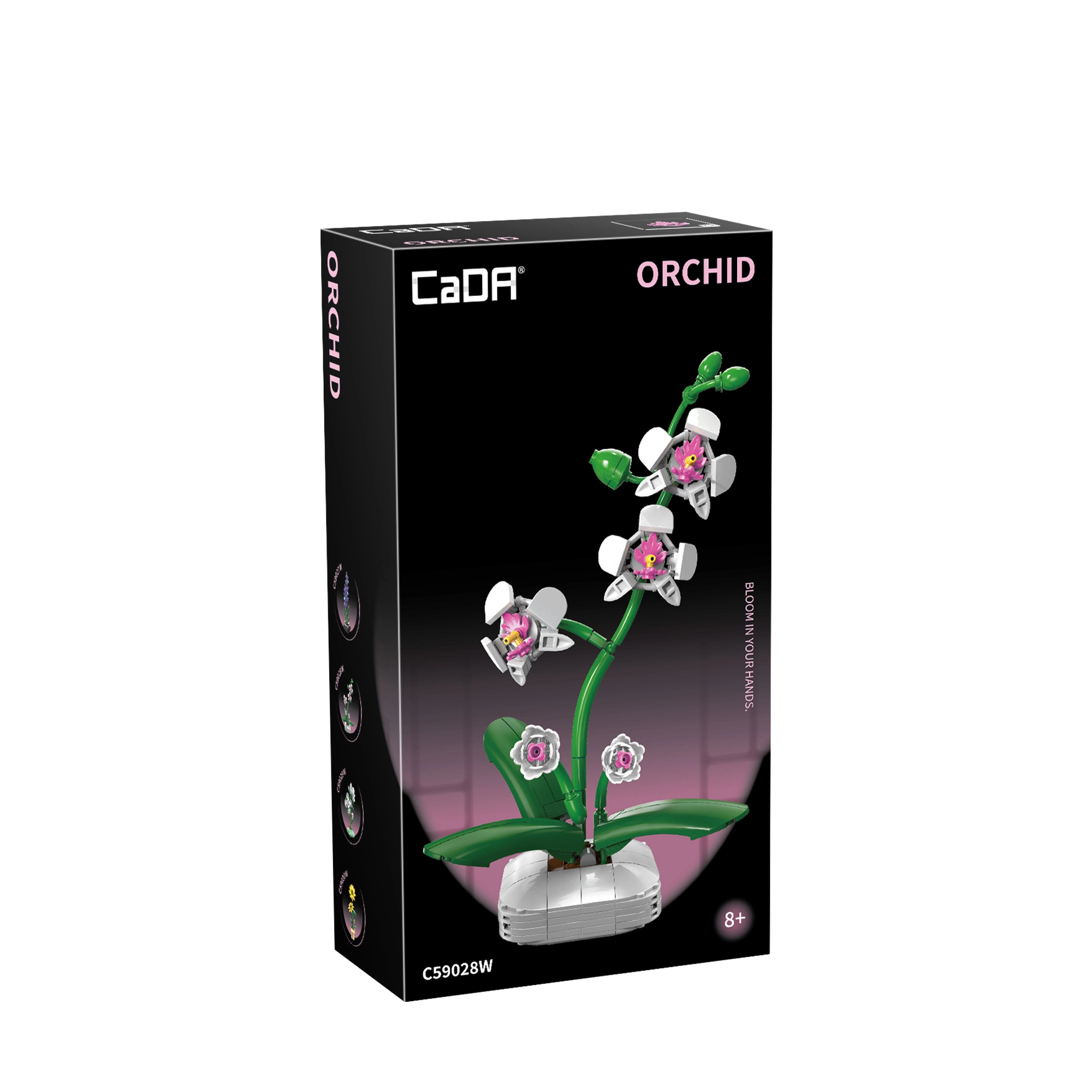 Ontdek creatieve ontspanning met de CaDA Orchid bouwset, die de tere schoonheid van de orchidee natuurgetrouw nabootst. De combinatie van realistische bloemen, groene bladeren en een stabiele bloempot vormt een stijlvol interieuraccessoire dat zowel design‑ als knutselfans zal bekoren.