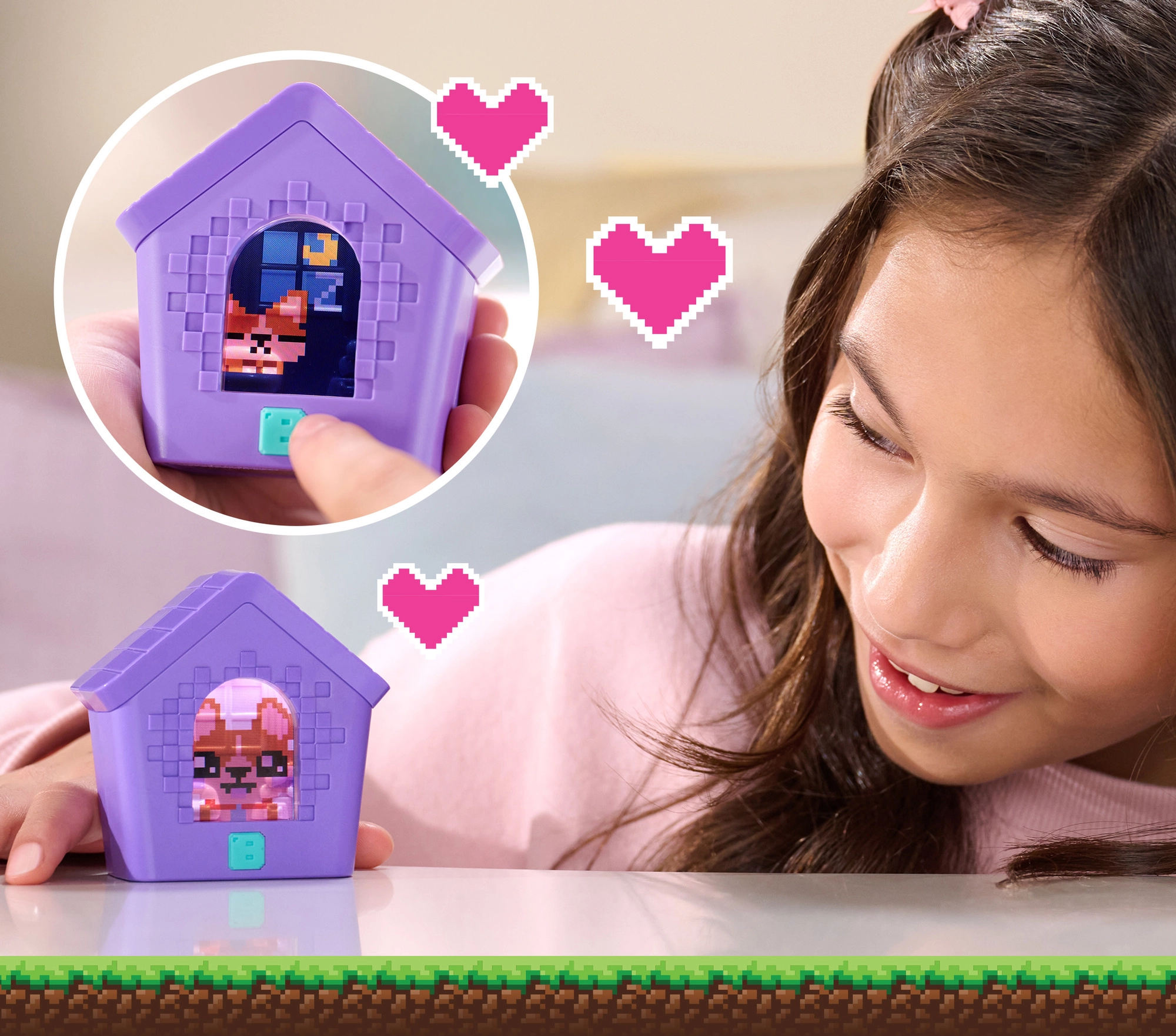 Ontdek de wereld van BITZEE DOGHOUSE – een interactief digitaal huisdier zonder klassiek scherm. In het compacte paarse huisje wachten wel 15 schattige puppy’s op je, die reageren op aanraking en beweging, liefdevolle geluidjes maken en emoties tonen. Aai ze, voer ze en speel – hoe meer zorg, hoe meer beloningen, spelletjes en verrassingen.