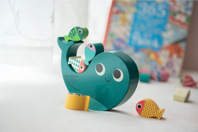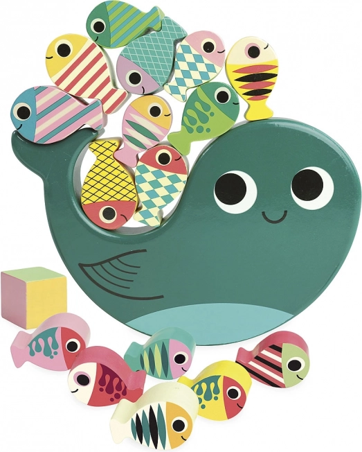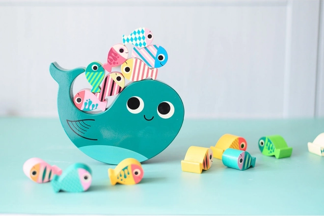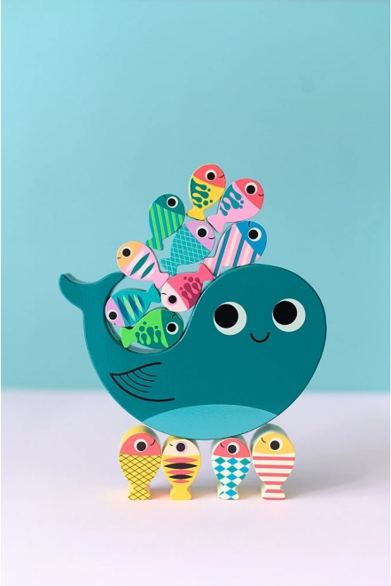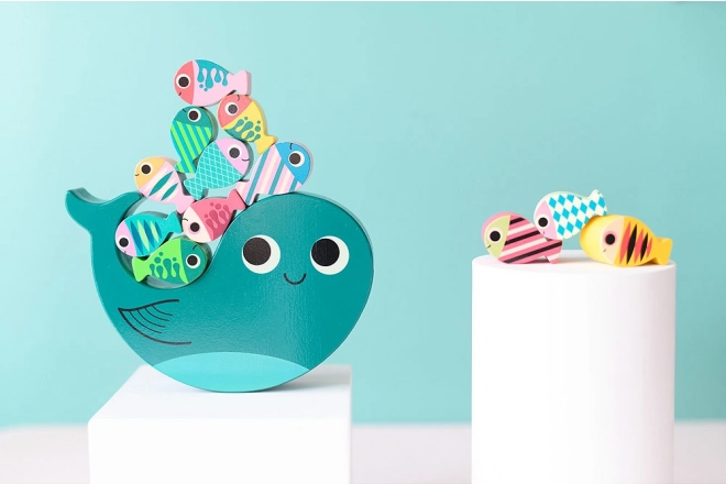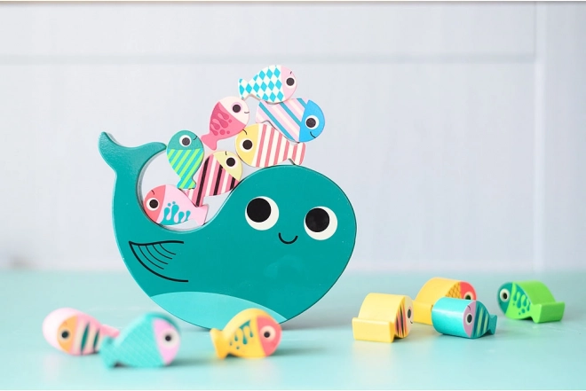 Stap visjes op de walvis zonder dat hij omvalt! Dit spel is niet alleen heel leuk, maar stimuleert ook de fijne motoriek en oog-handcoördinatie van kinderen. Hoogwaardige materialen en een milieubewuste productie verzekeren dat het spel niet alleen veilig is, maar ook vriendelijk voor het milieu.