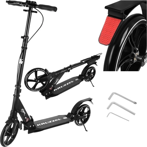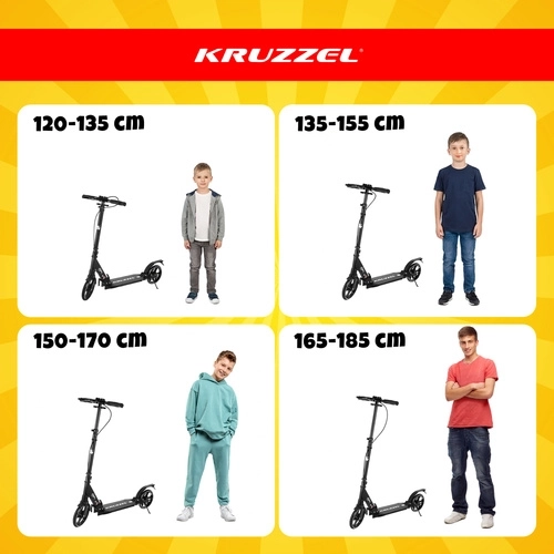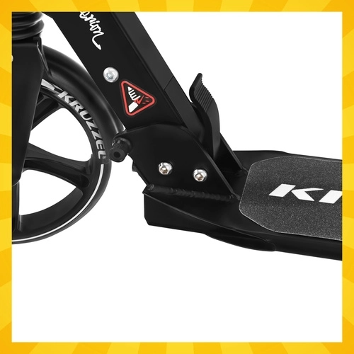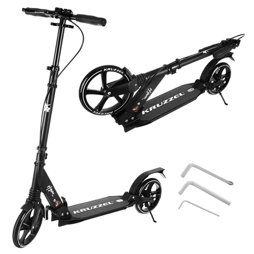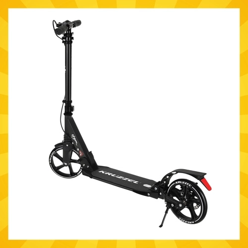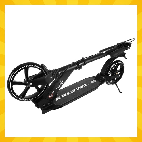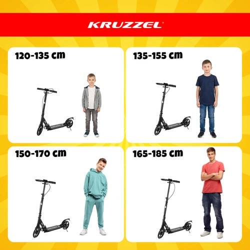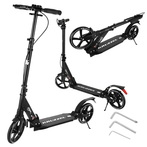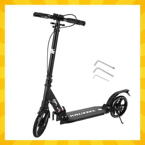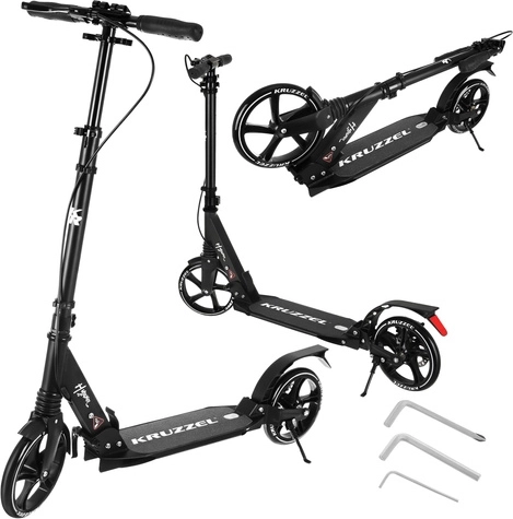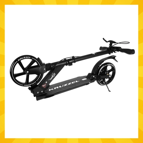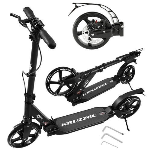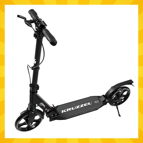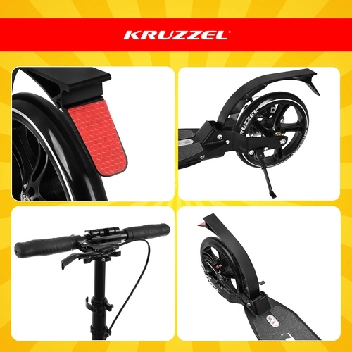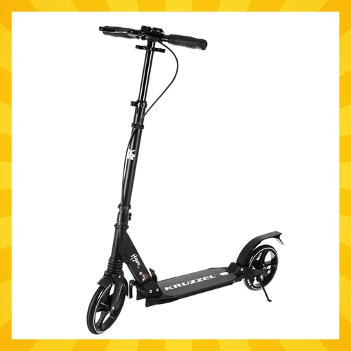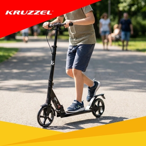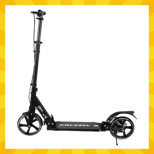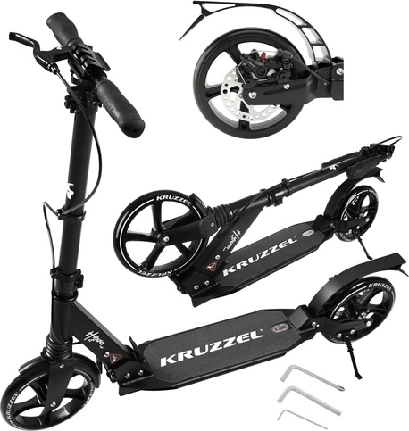 Lichte en duurzame step KRUZZEL Hyperion voor stad en fietspaden combineert grote 200 mm rubberen wielen, soepele ABEC-9-lagers en een dubbel remsysteem (handmatige schijfrem + voetrem). Dankzij het snel vouwen, de in hoogte verstelbare stuurstang in 4 standen en de vering biedt hij comfort, veiligheid en mobiliteit voor kinderen vanaf 10 jaar en volwassenen.
