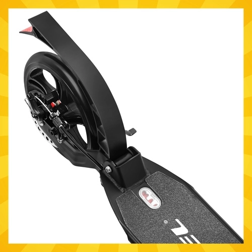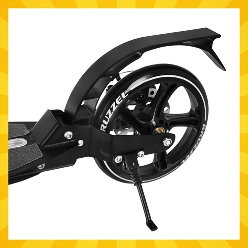 Voor veilige controle zorgt het dubbele remsysteem: een handmatige schijfrem en een achterste voetrem in het spatbord. De viervoudige hoogteverstelling van het stuur (84 / 93 / 98 / 103 cm) maakt aanpassing aan zowel kind als volwassene mogelijk. Het antislip deck en de zachte grips zorgen voor zekerheid en stabiliteit in elke situatie, de parkeerstandaard maakt neerzetten gemakkelijk.