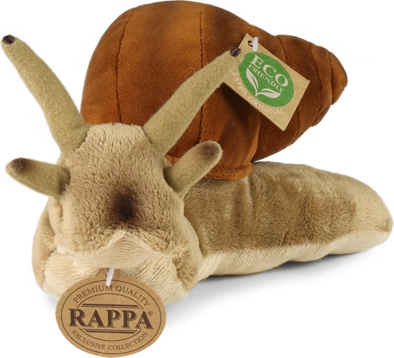 Een schattige pluchen slak van 24 cm uit de exclusieve RAPPA-collectie, gemaakt van zacht materiaal en gevuld met gerecyclede vezels uit PET-flessen. Dankzij het handmatige vakmanschap oogt hij realistisch, is hij veilig voor kinderen vanaf de geboorte en vriendelijk voor het milieu.