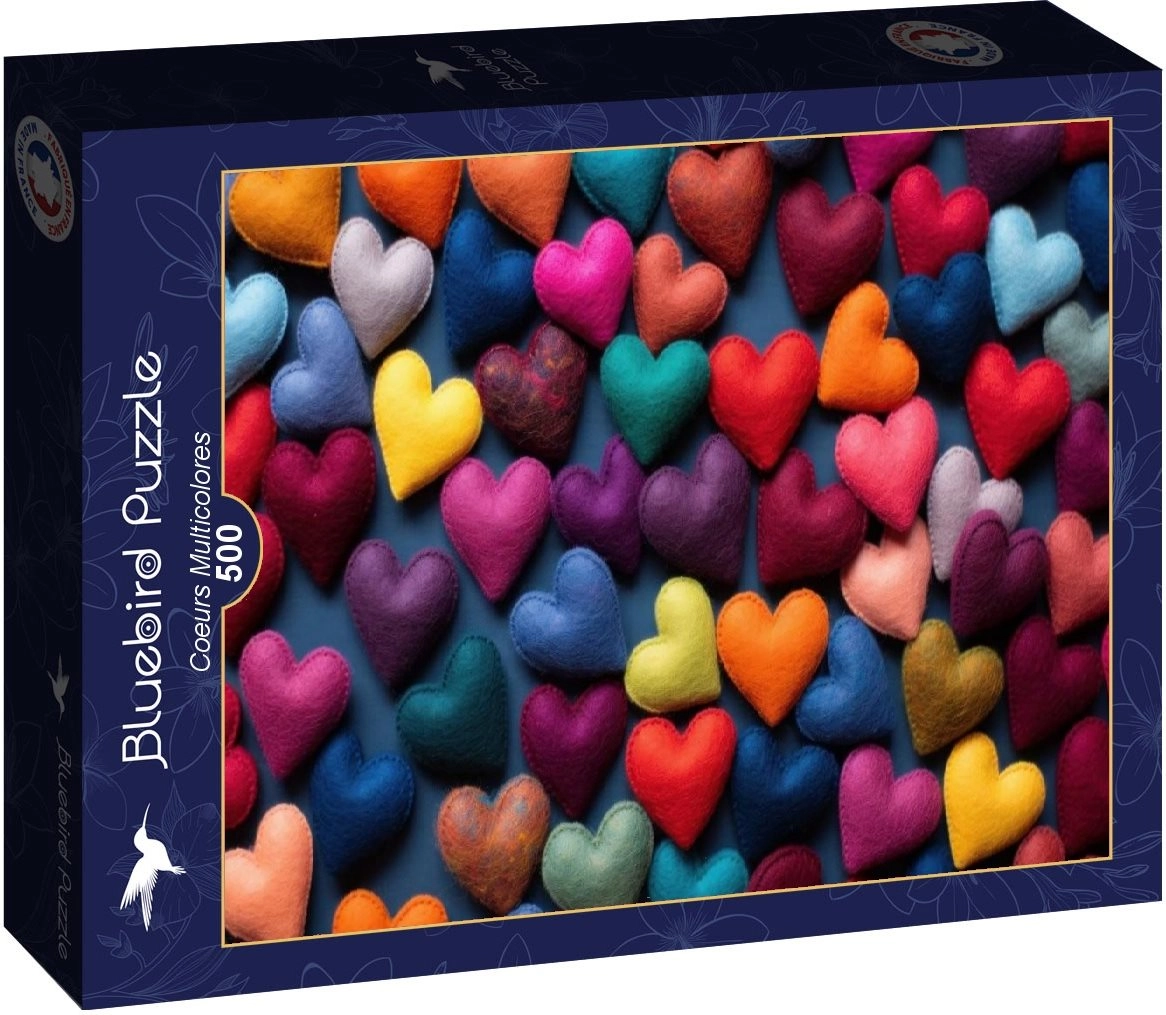 Deze puzzel met het motief van kleurrijke harten zal alle liefhebbers van relaxen en familieplezier bekoren. Met 500 stukjes biedt hij een aangename uitdaging voor een middag en vormt na het leggen een afbeelding van 47,8 × 34,2 cm, ook geschikt om in te lijsten.