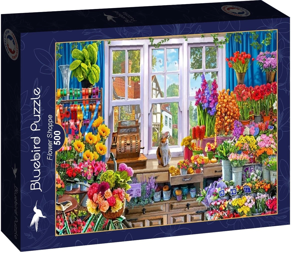 Geniet van ontspanning met het prachtige bloemenwinkelmotief op deze hoogwaardige puzzel van 500 stukjes van het merk BLUEBIRD. Nauwkeurige stans, levendige kleuren en een prettig formaat zijn ideaal voor relaxed puzzelen thuis. De voltooide puzzel meet circa 47,8 × 34,2 cm en past perfect in een lijst.
