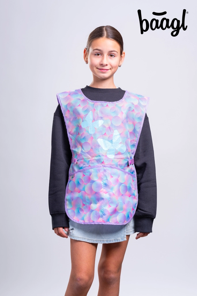Onderdeel van de set is een ruime etui met één laag met YKK-rits, een zak voor pantoffels of sportspullen, een afwasbaar kinderschort voor handvaardigheid en een praktische nekportemonnee. Speelse verwisselbare badges zorgen voor stijl, terwijl opvallende reflecterende elementen de veiligheid vergroten.