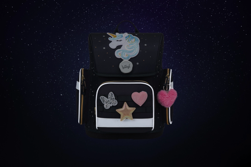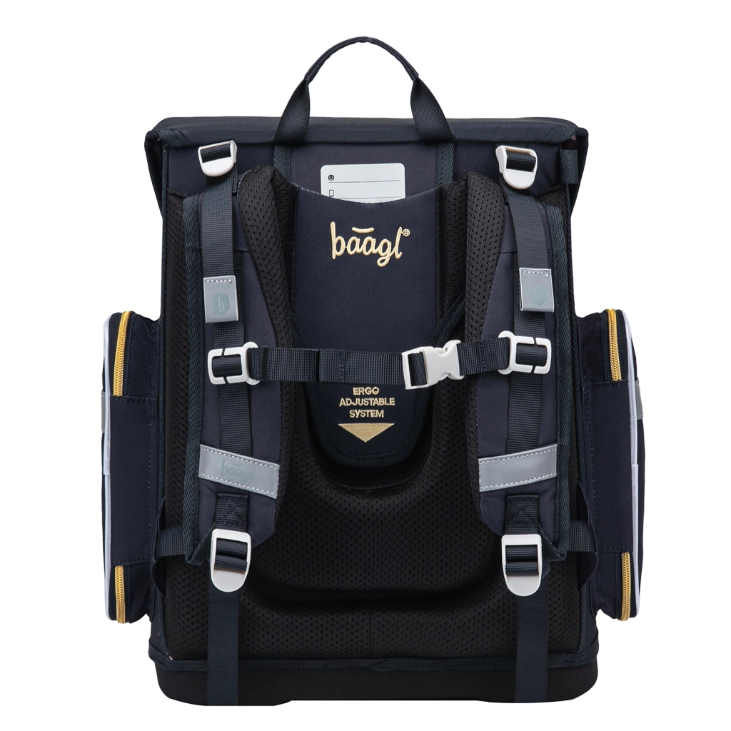 De BAAGL Ergo Unicorn Gold schoolset is ontworpen voor comfortabel en veilig dragen van schoolspullen vanaf groep 3. De ergonomische schooltas met stevige bodem en laag gewicht tot 1200 g biedt stabiliteit en een gezonde gewichtsverdeling. Het verschuifbare rugsysteem ERGO ADJUSTABLE SYSTEM, volledig verstelbare banden en borstriem helpen de tas perfect aan te passen aan het lichaam van het kind.