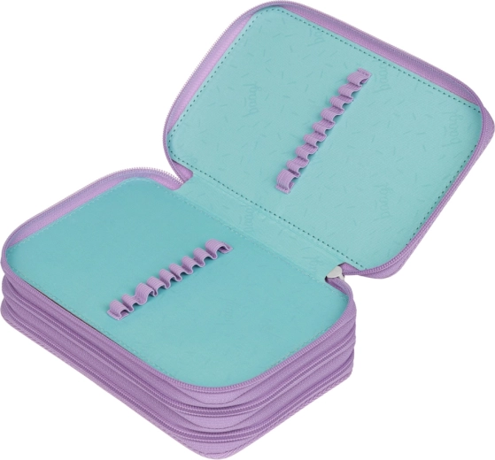 Stijlvolle en extra ruime driedelige etui BAAGL Candy houdt al het schrijfgerei overzichtelijk op één plek. Biedt drie afzonderlijke vakken, elastieken voor dikke kleurpotloden en stiften, verstevigde rug voor eenvoudig sluiten en betrouwbare YKK-ritsen. Ideale keuze voor scholieren die orde én stijl willen. De etui is zonder vulling.