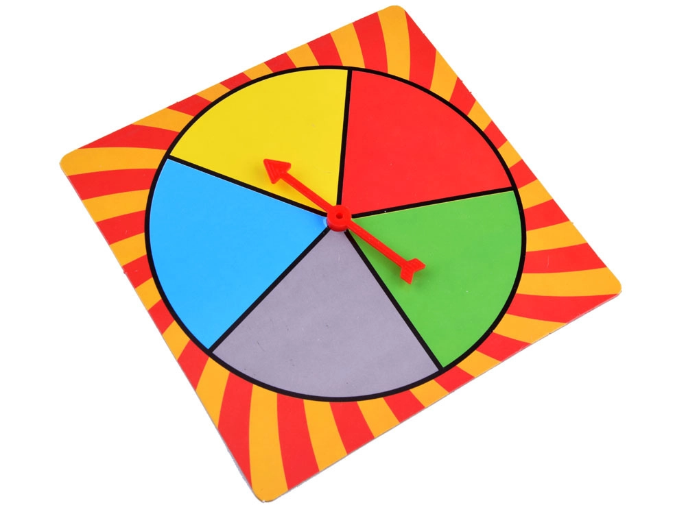 Het in kleuren verdeelde rad bepaalt naar welke kleur “steen” je moet verplaatsen. Eenvoudig, snel en spannend in elke ronde.