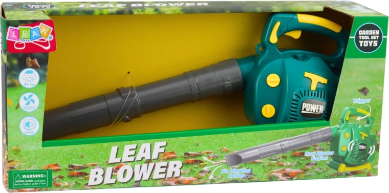 Deze groene kinderbladblazer bootst een echt tuingereedschap levensecht na. Bij het inschakelen geeft hij realistische geluiden en creëert hij een luchtstroom, waardoor het spel boeiend is en creativiteit en verbeelding worden gestimuleerd.