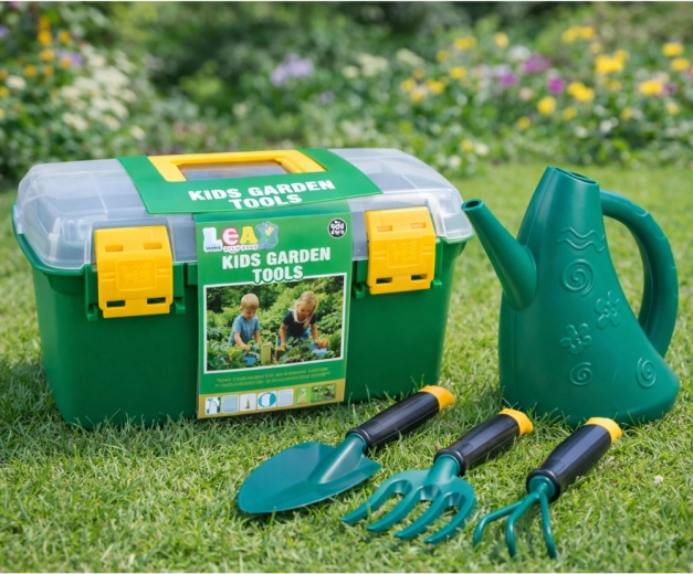 De set is afgestemd op kinderen – veilige materialen, comfortabele grepen en een formaat voor kleine handen stimuleren zelfstandigheid en liefde voor de natuur.