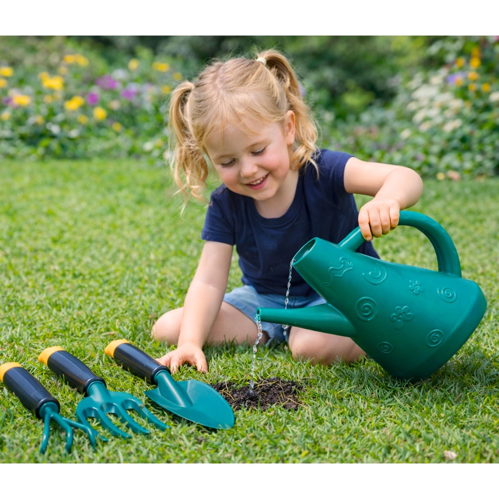 Kinderen kunnen zelf bloemen en perkjes water geven dankzij de lichte kunststof gieter met ergonomisch handvat en smalle tuit voor een gecontroleerde waterstraal.