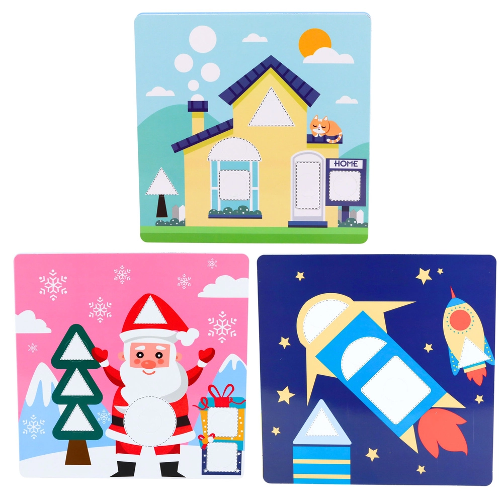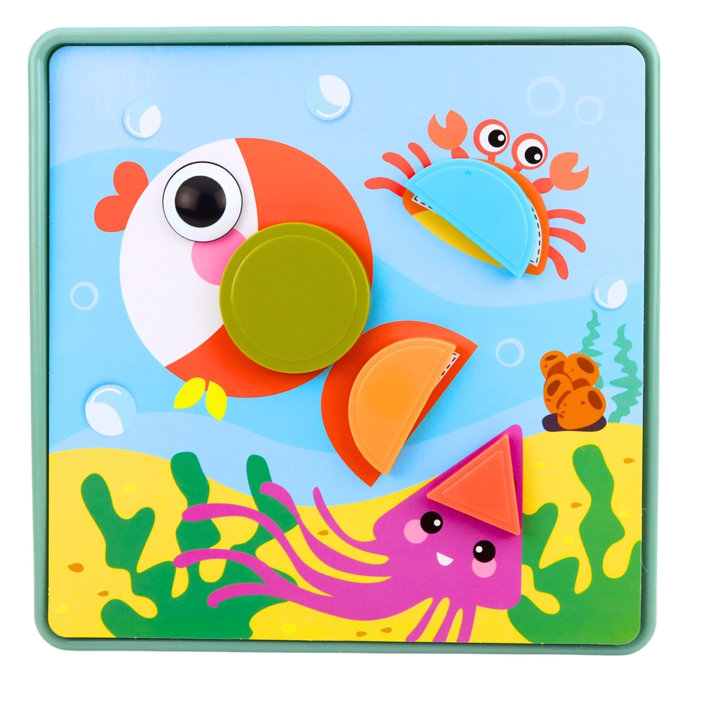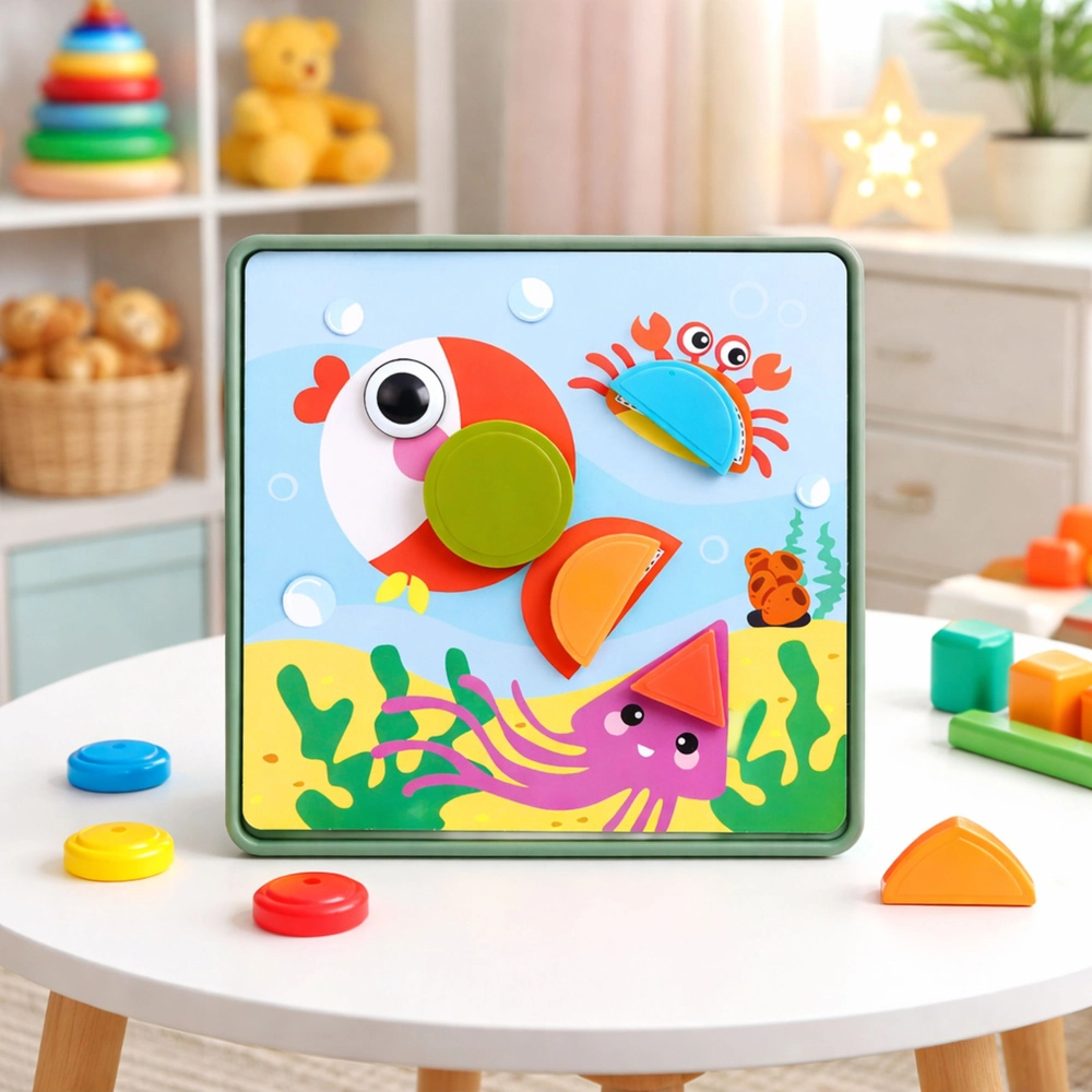 Deze educatieve mozaïek biedt spelenderwijs leren – kinderen koppelen geometrische stukjes aan de afbeeldingskaarten of ontwerpen hun eigen composities. De onderdelen liggen prettig in de hand en zijn veilig voor kleine handjes, waardoor ze ideaal zijn voor het oefenen van nauwkeurige bewegingen en concentratie.