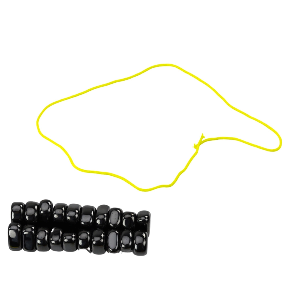 Glanzende ovale stenen liggen prettig in de hand en glijden soepel over de ondergrond. Het gele koord laat je snel een speelzone afbakenen, waar dan ook.