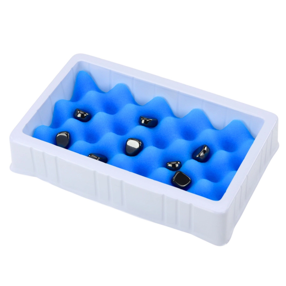 De stevige kunststof tray met gevormde schuiminzet houdt de stenen gescheiden en speelklaar. Gemakkelijk te organiseren en veilig op te bergen na afloop.