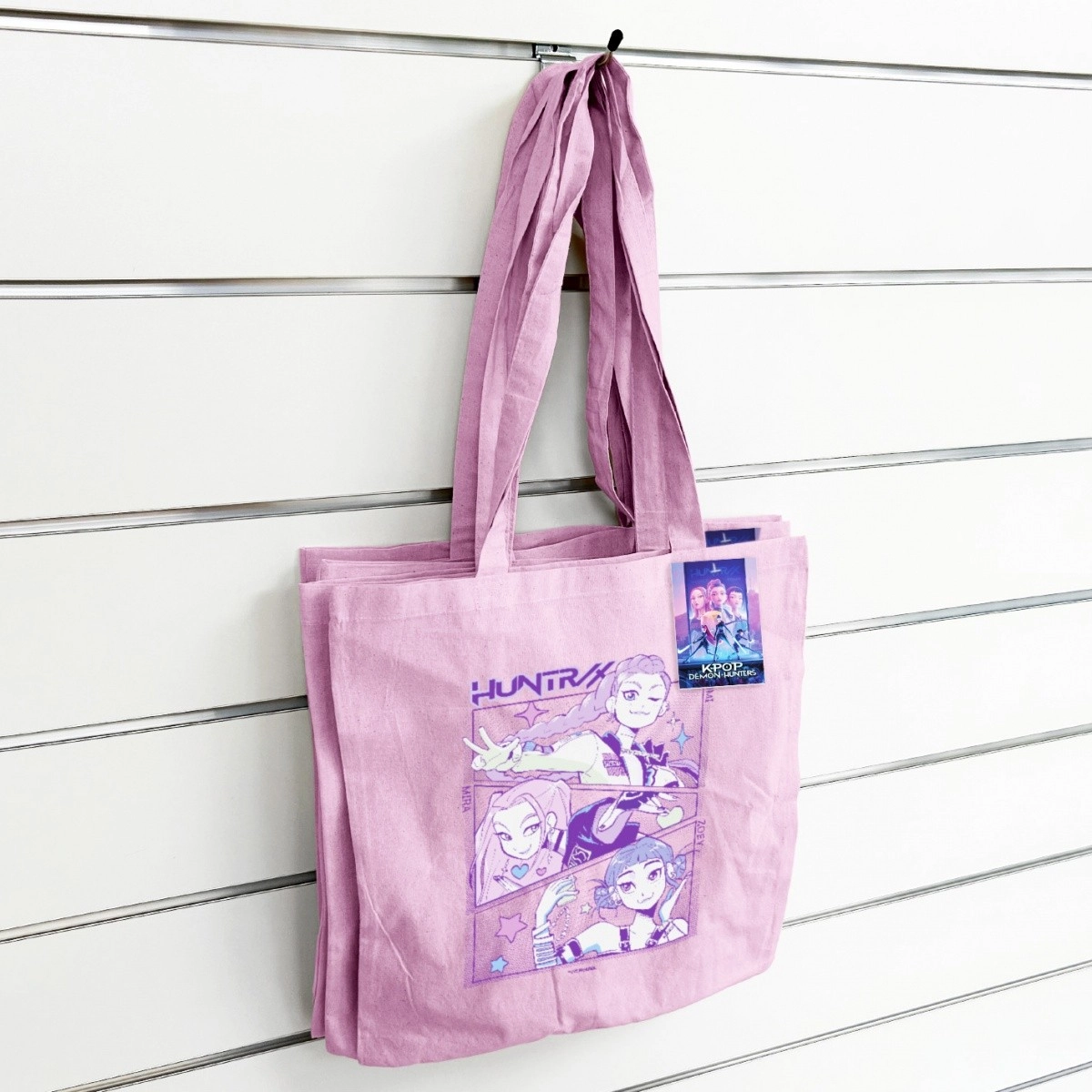 Laat je passie voor K-POP en het team Demon Hunters zien met deze roze katoenen tas. Perfect voor in de stad, naar school of naar een concert – je vouwt hem makkelijk op en hebt hem altijd bij de hand. Dankzij het duurzame katoen is hij geschikt voor boeken, kleine boodschappen en accessoires.