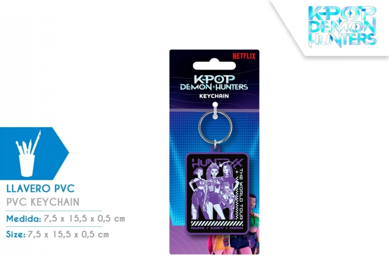 Stijlvolle sleutelhanger van PVC, geïnspireerd door de wereld van K-POP en DEMON HUNTERS, zodat je je favoriete personage altijd bij de hand hebt. Dankzij het duurzame PVC, de metalen ketting en de ring is hij ideaal voor sleutels, rugzak en etui. De lengte van 15,5 cm zorgt voor comfortabel dragen en een opvallend design.